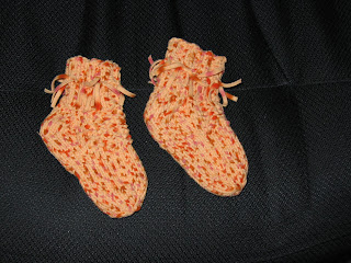 The past few months find me crocheting instead of doing dishes or laundry, and even instead of reading--very little can turn me from a good book, I assure you! I have tried my hand at many a small project and found a passion worth persuing. My sister-in-law's preemie got two matching sets of hat and booties, I've been making burp cloths for friends expecting babies, I've got a toy bunny (in the works), a toy hampster on my older son's shelf, a scarf, some granny squares, and now a mesh bag that's in progress. I have many grand dreams of what I want my next project to be: patchwork poncho for my daughter, a school-colored scarf for my son, a baby toy, a pair of slippers and baby blankets, hats and booties. I cannot seem to help myself; I want to try one of everything and just keep going. I know there is still a lot to learn.